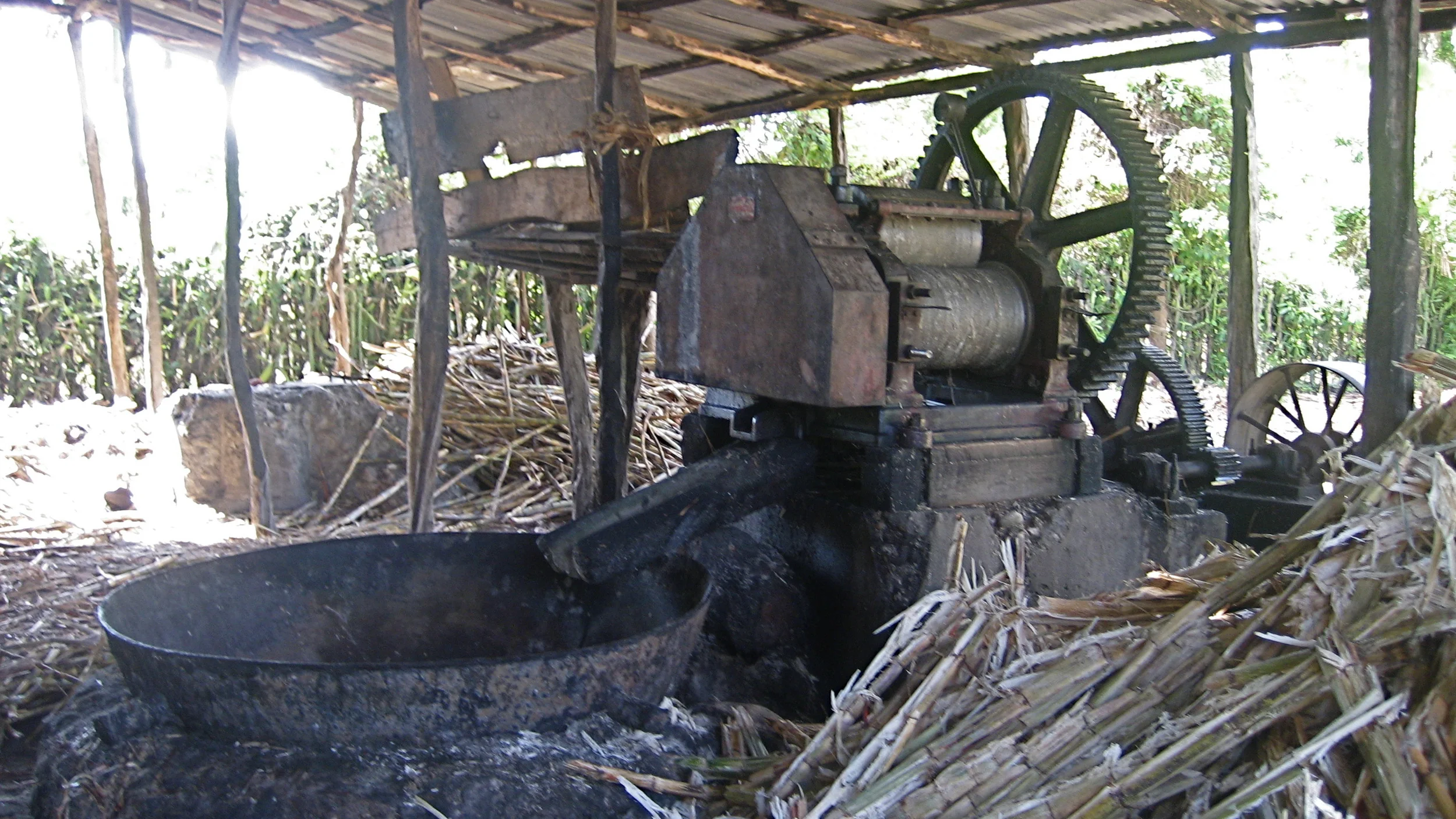 The Artibonite's history of sugar cultivation is evident in both ruins and extant mills. I’ve seen a number of larger operations in the Valley of St. Marc. This small mill north of the road between Deschapelles and Verrettes still made a well-spiced sirop, available in Barbancourt bottles, on my 2008 visit. The mill’s owner said that this structure had been in the family since the 1700s. It is pulled by the family’s animals. While some of the wood is obviously quite new, other wood seems very old. The later photos are of other nearby, small-scale mills. Almost all the sites featured the big metal bowls that could possibly be taken from older colonial habitations--does anyone know?